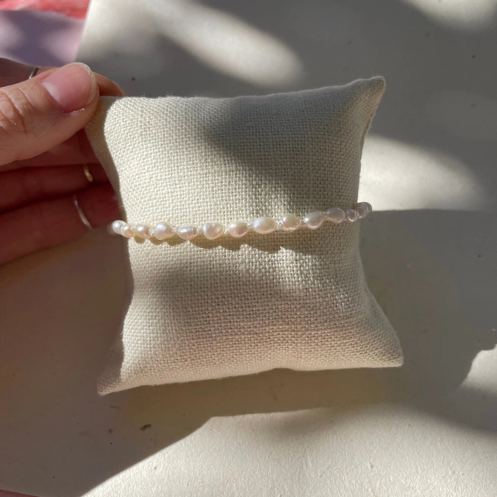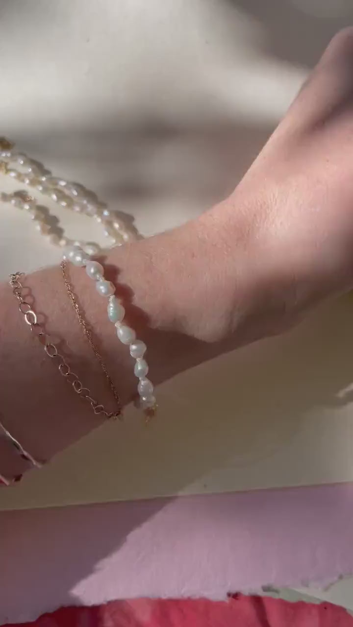 This whimsical hand-knotted bracelet adorns your wrist with lustrous freshwater pearls. Handcrafted with care and attention to detail, it's knotted on nylon for lasting durability, ensuring it won't stretch over time. Finished with a 14k gold-filled lobster clasp and extension chain for a secure fit. I can also use sterling silver hardware- please don't hesitate to reach out!