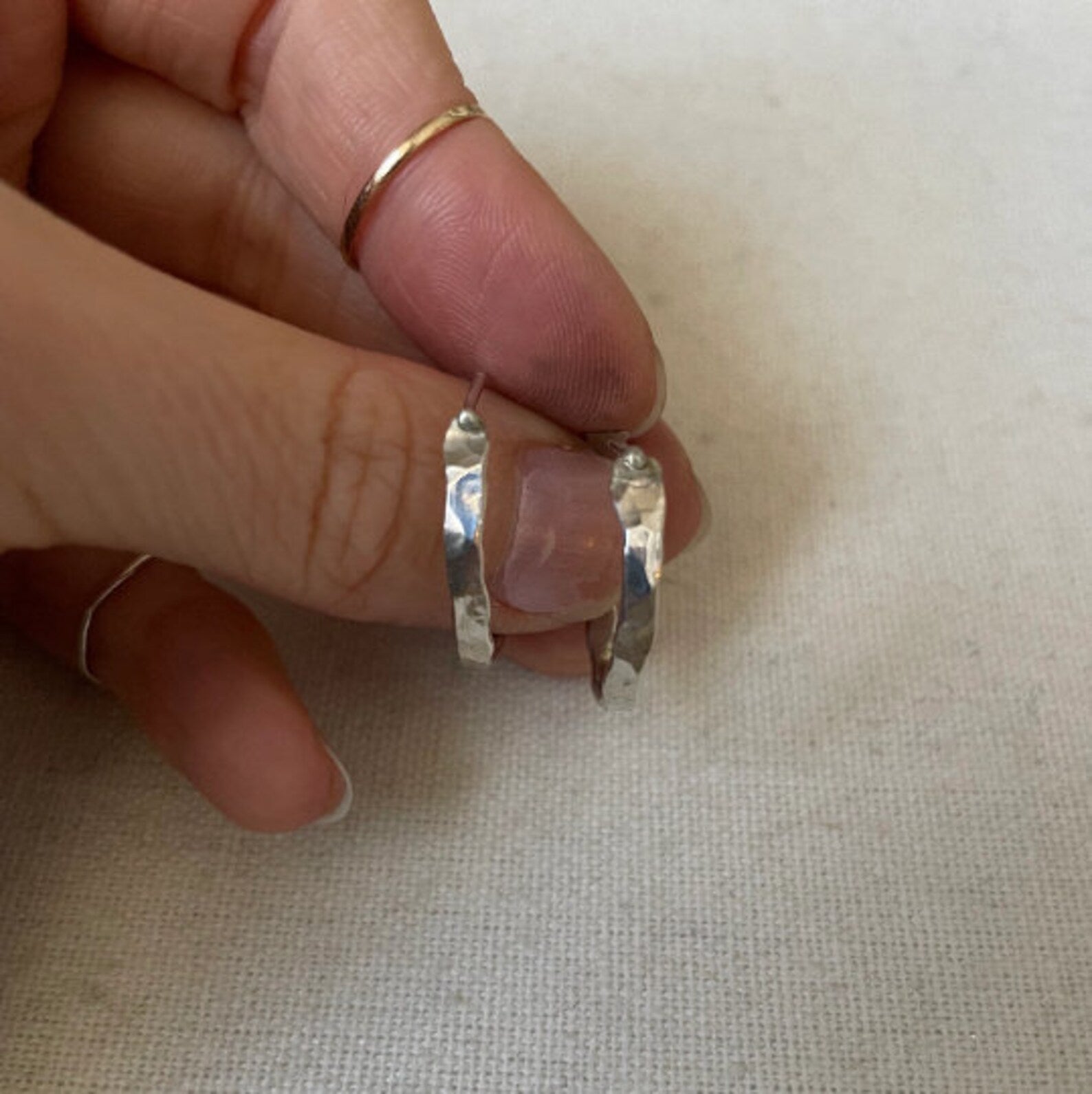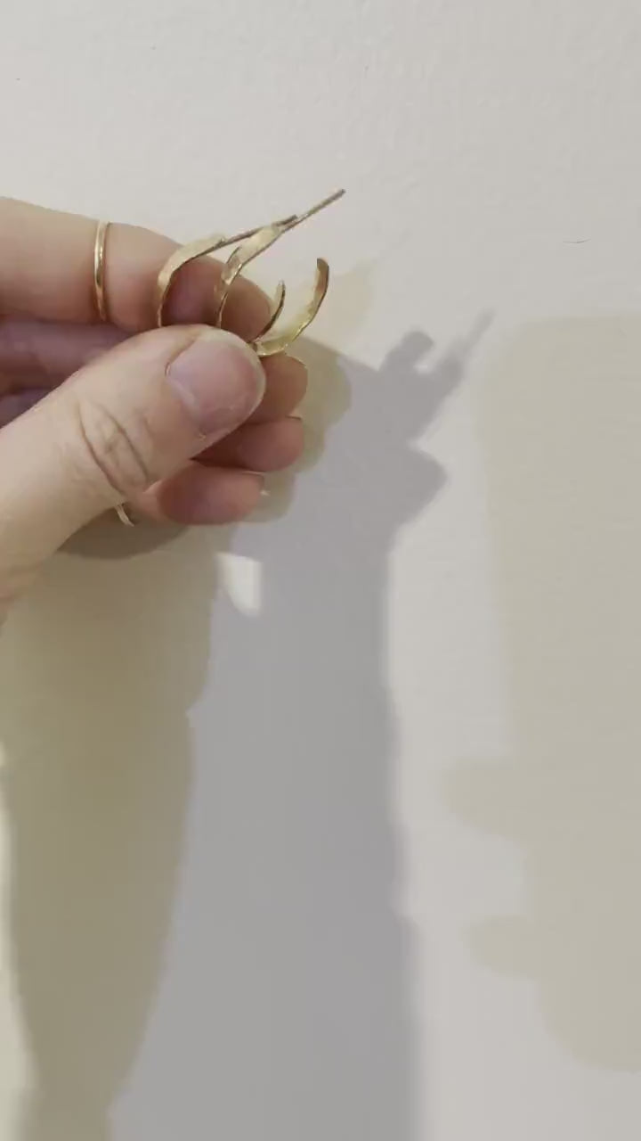Indulge in the whimsy of our artisan handcrafted earrings, meticulously hammered and shaped by hand to create a charming demi hoop silhouette. Immerse yourself in the lightweight elegance of these earrings, safe for a daily wear and in the shower. Suspended approximately 1” below the earlobe, they promise a delicate yet striking presence.