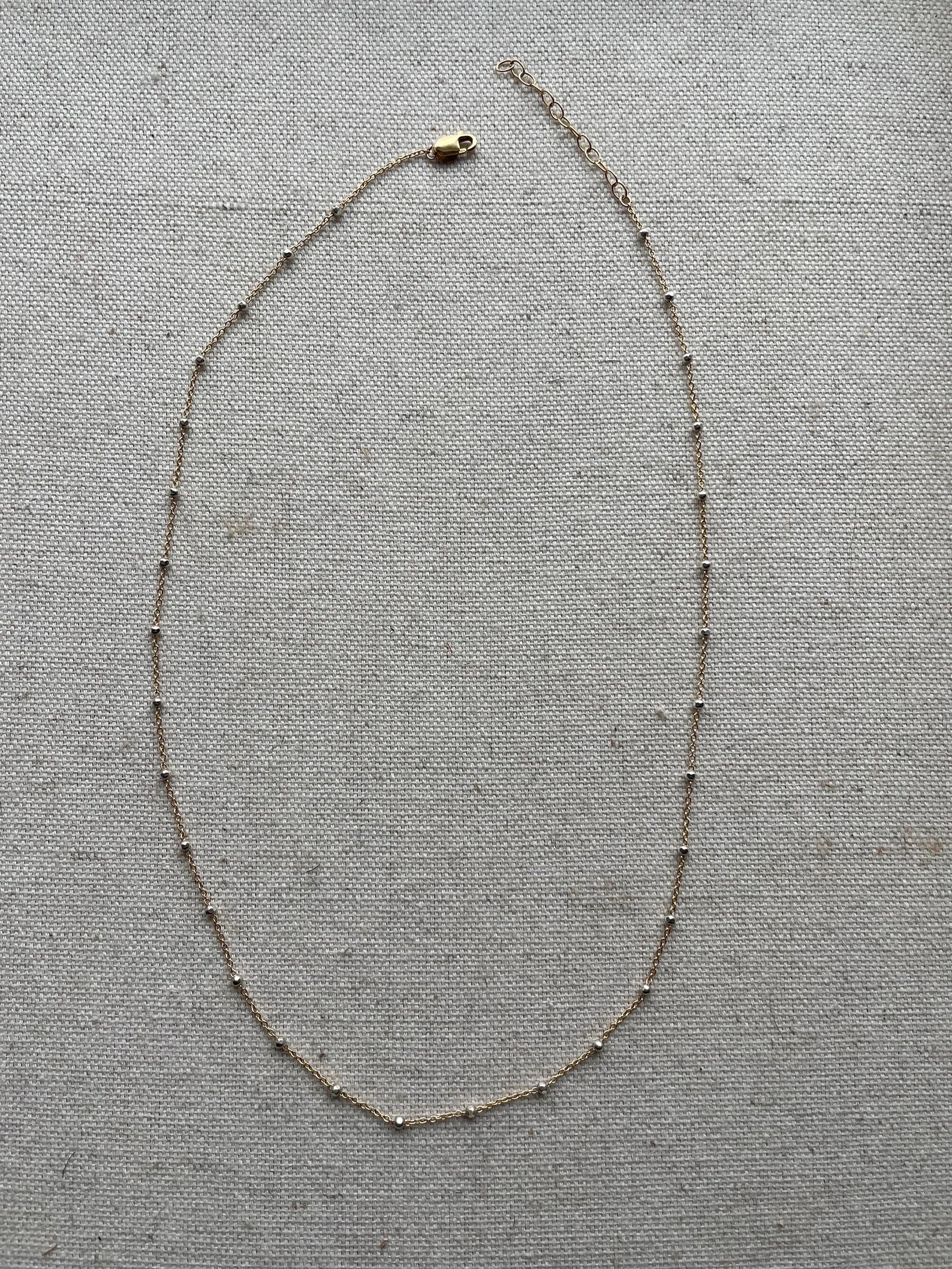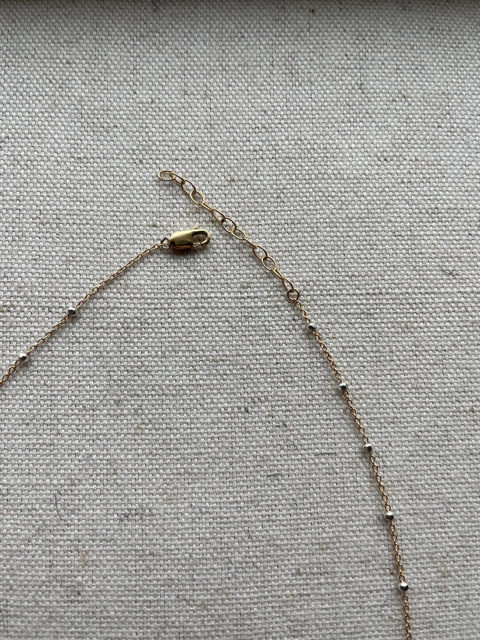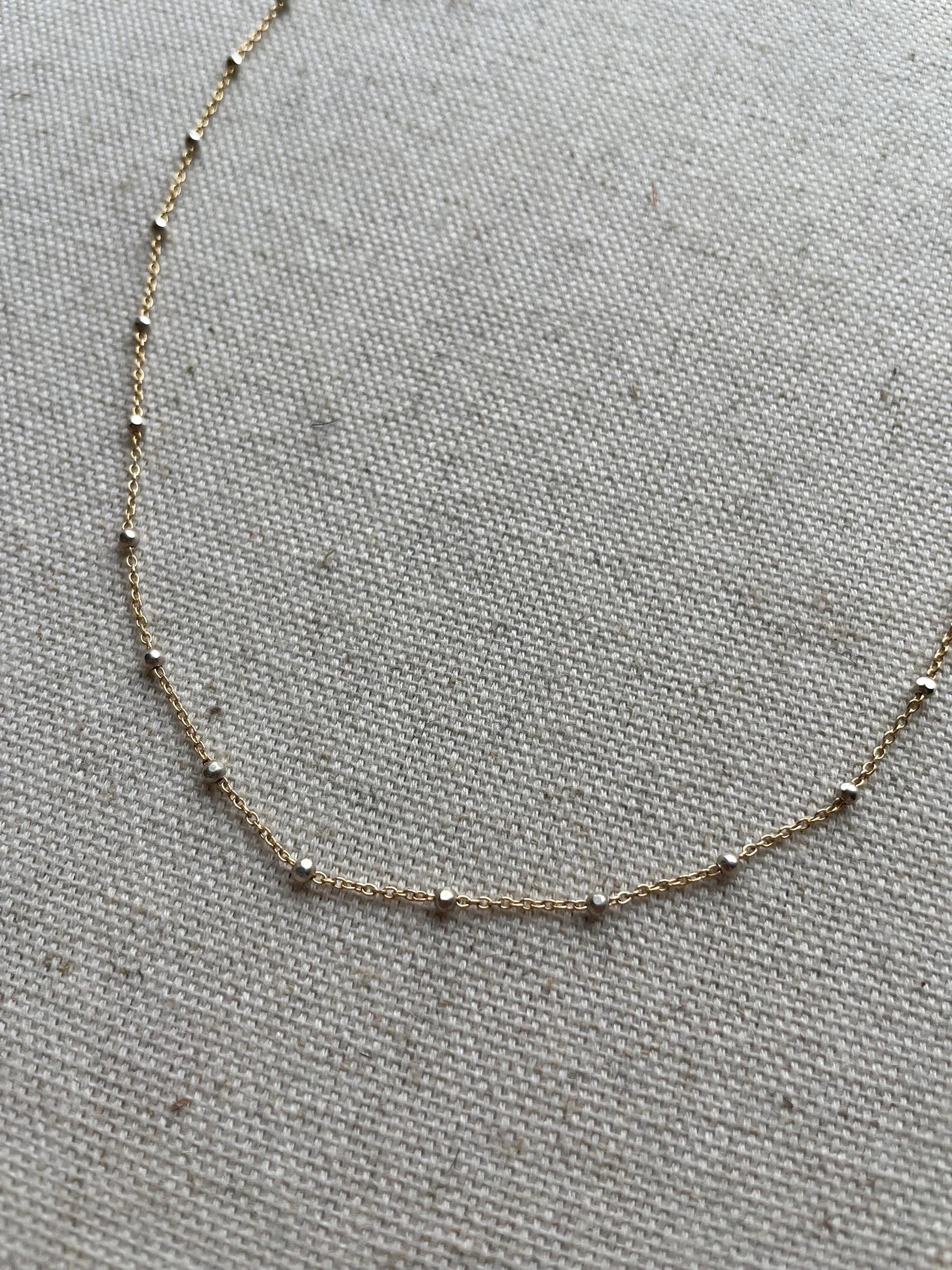 This chain is a beautiful addition to your daily stack! The dainty little sterling silver balls within the gold filled chain are so cute & sparkly. This is a perfect chain for anyone who likes to mix metals. Wear it solo or slip on some charms!