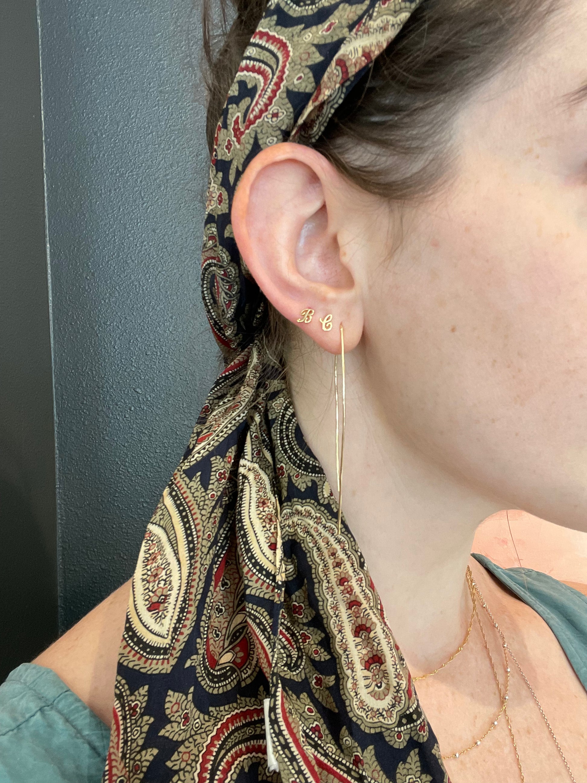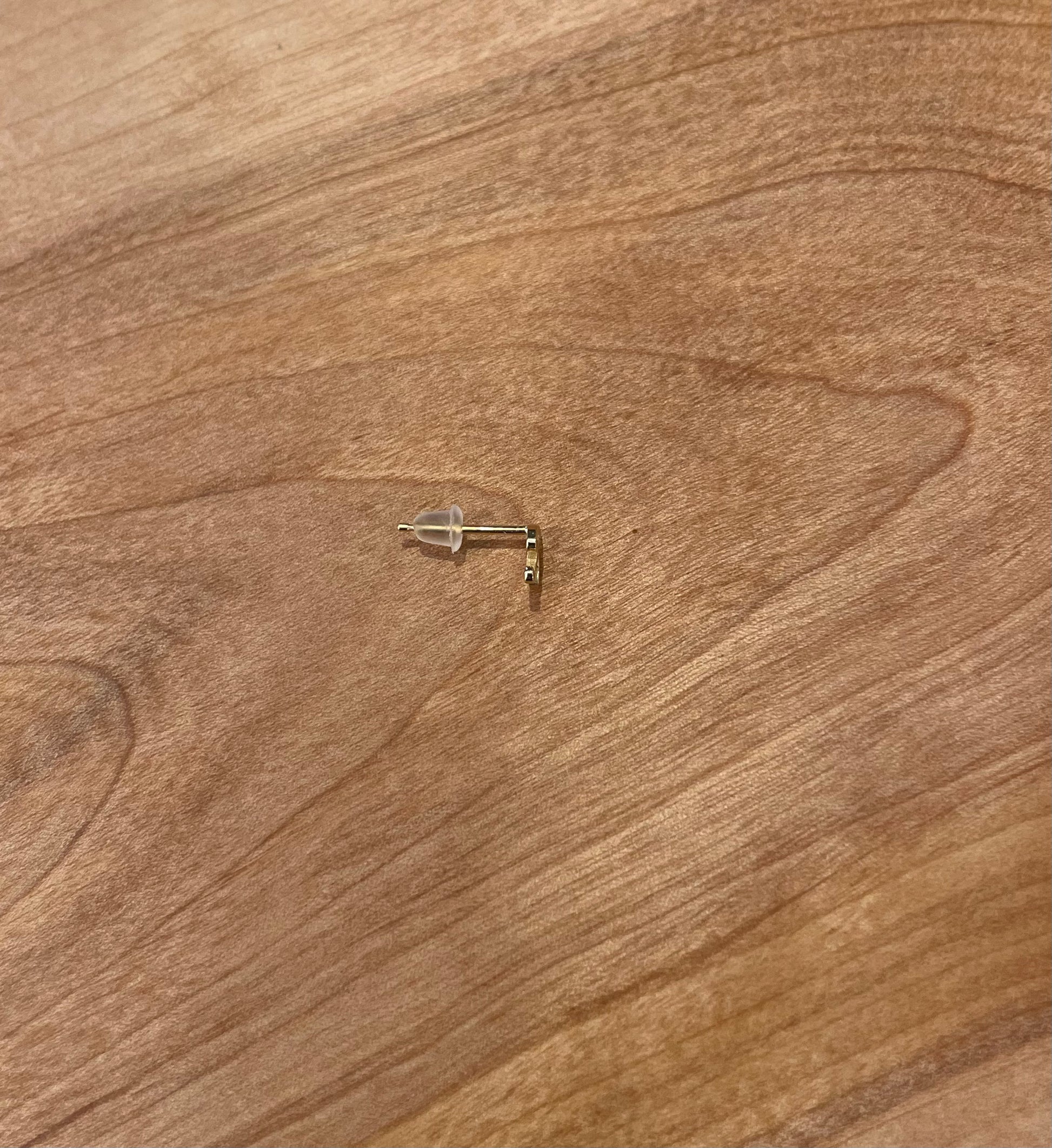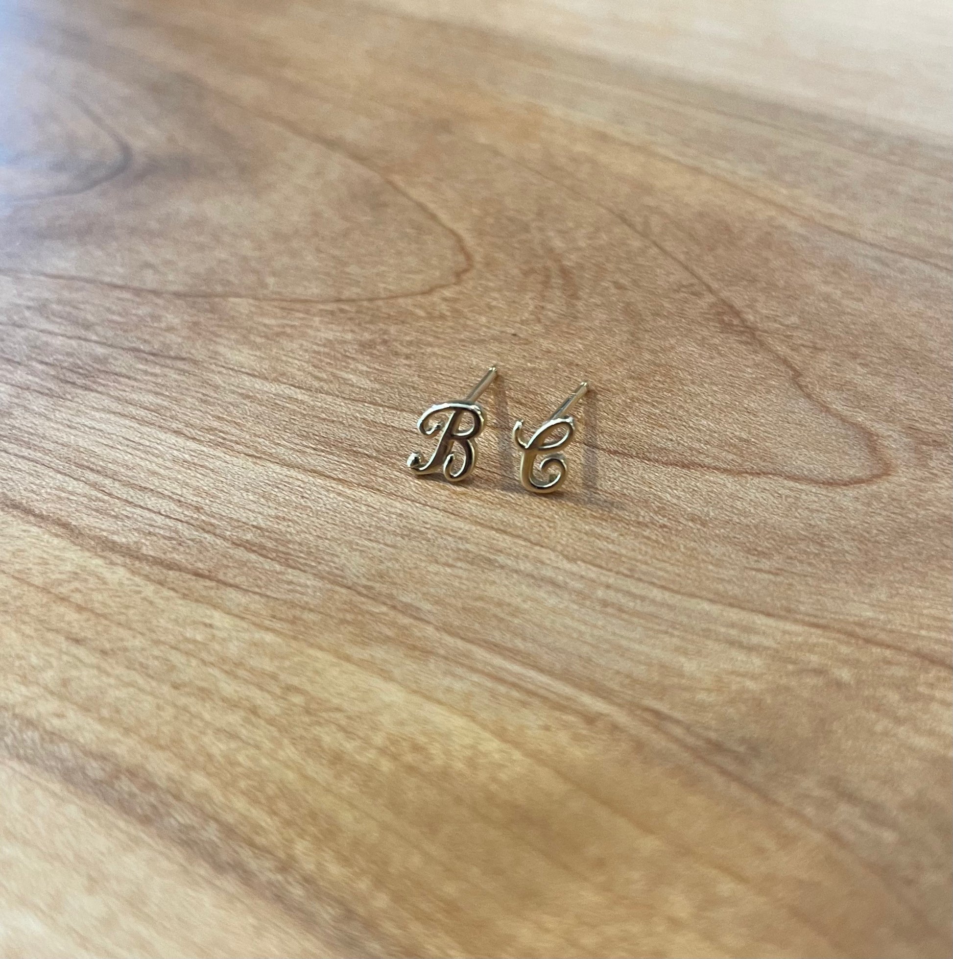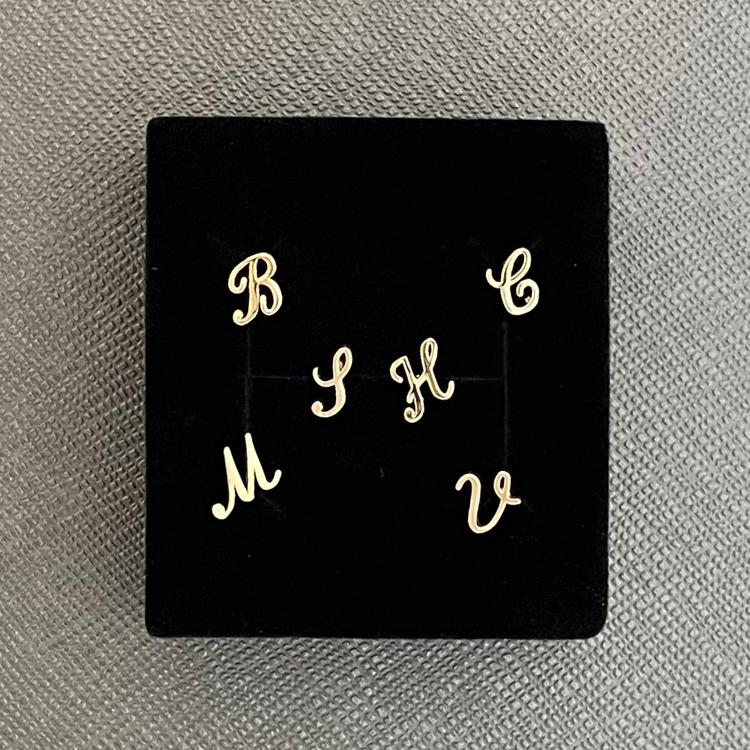 This listing is for one, single gold earring stud. A solid 14 karat gold, cursive initial is securely soldered to a solid 14k gold post to create a beautiful stud earring. One rubber earring back is included with each post, though a solid 14k gold butterfly back can be added for $6, please contact me if you prefer that!